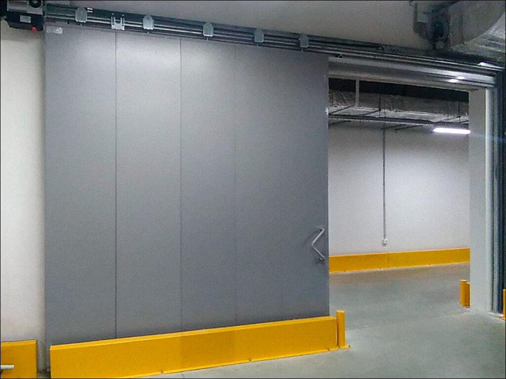 Откатные одностворчатые противопожарные ворота в торговый комплекс