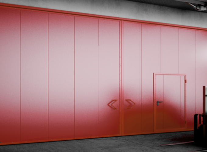 Распашные противопожарные ворота в складском помещении