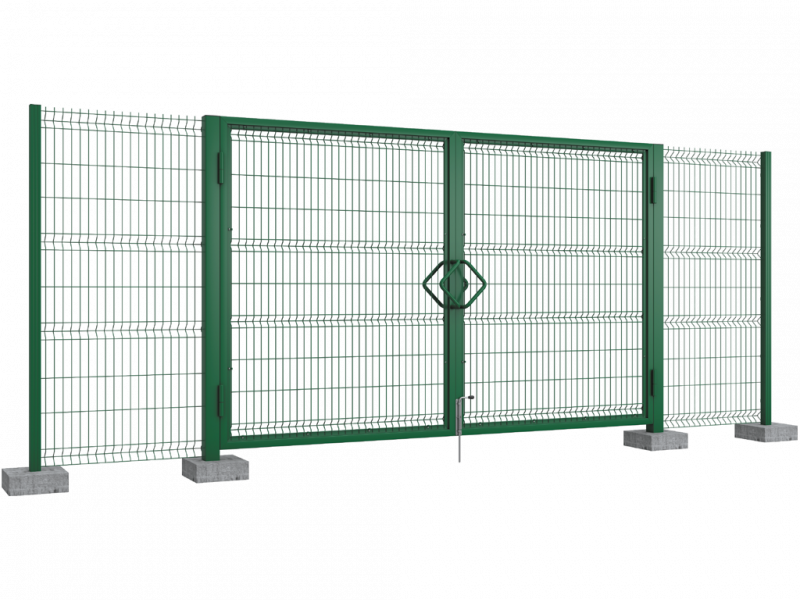 Распашные ворота с 3Д сеткой DoorHan представляют собой надежную конструкцию из профильной трубы и сварной решетки. Высокая прочность изделия обеспечивается использованием для производства толстого стального прутка и толстостенного профиля. Также все детали конструкции имеют двухслойное покрытие, защищающее от коррозии на протяжении длительного срока эксплуатации. Можно заказать ворота в Великом Новгороде с интегрированными запорными механизмами. В базовой комплектации имеется ручки и штырьковый нижний запор-задвижка.